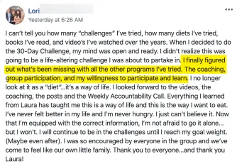 The biggest “problem” most of the women on the program have is they are NEVER hungry, and I have to constantly remind them to EAT!